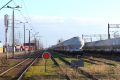 2015-01-29, czwartek Widok na Gdynię Port Centralny z przejazdu w stronę Gdyni Głównej na zmęczone tory wysadzane wskaźnikami D1, a nawet DO się trafiło. Gruszki też nie w pierwszej młodości.. Z lewej strony widać terminal kontenerowy i wiszący na samobieżnym podnośniku kontener.