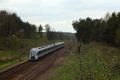 Wytwór Pesy ED161-009 przechodzi przy peronie przystanku Białystok Wiadukt w drodze z Bielska. Z lewej nie załapał się tor motoctross'owy, gdzie dawcy skakali niczym gumowe kulki.