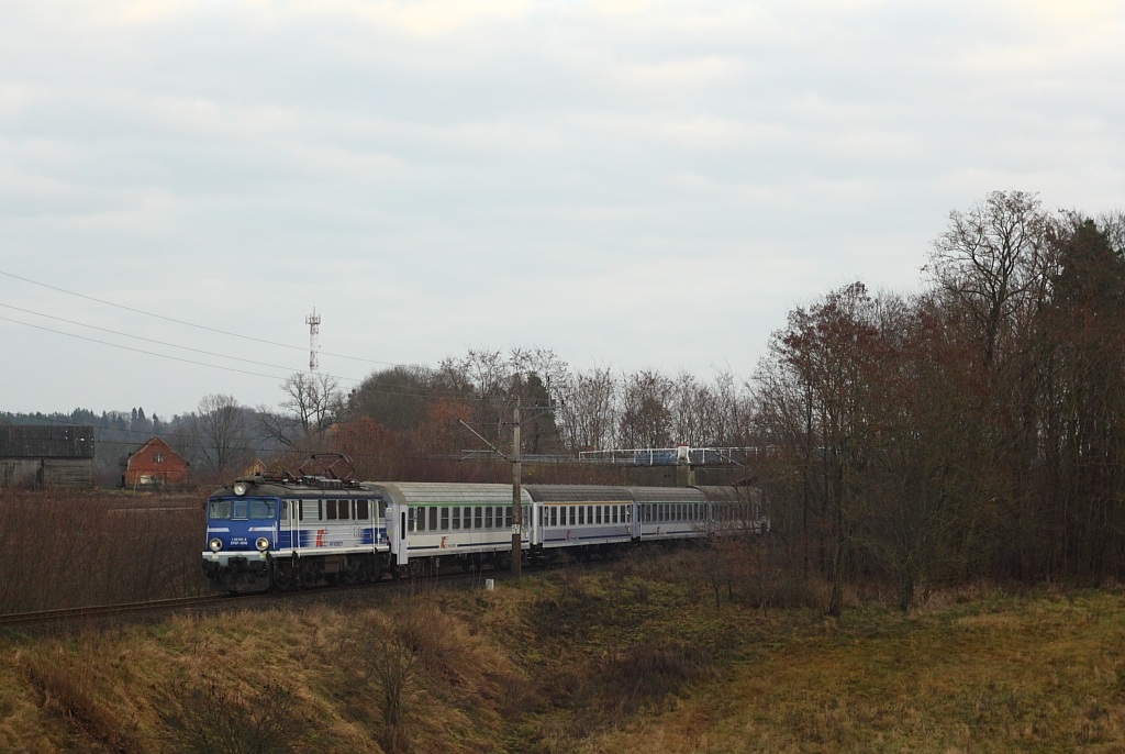 2016-11-21, poniedziałek EP07-1016 już pędzi z TLK Gryf do Szczecina po mijance z Gryfem do Olsztyna, która odbyła się uroczyście w Żabim Rogu. Szczegóły