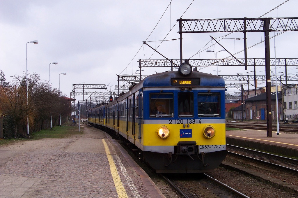 Po postoju na wjazdowym zestaw EN57-1757+1052 kończy trasę z Gdańska Śródmieście w I peronie Lęborka.