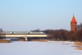 Jest i obowiązkowe Pendolino do Ziemi Obiecanej o nieustalonych numerach. Pod mostem, przy filarze widać dwie żądne wrażeń spacerowiczki - gruba rura, cienki lód.