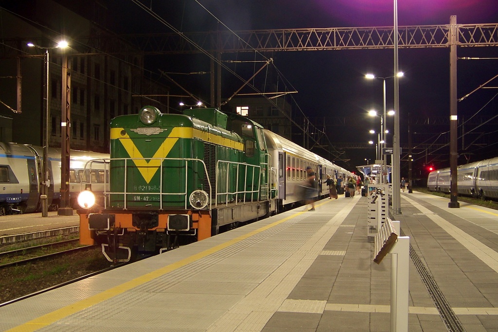 Tętniący nocnym życiem Kołobrzeg. Prywatna SM42-2168 dopchała zasadniczą część zestawienia TLK Posejdon, która zaraz zapełni się tłokami w kierunku Łodzi.