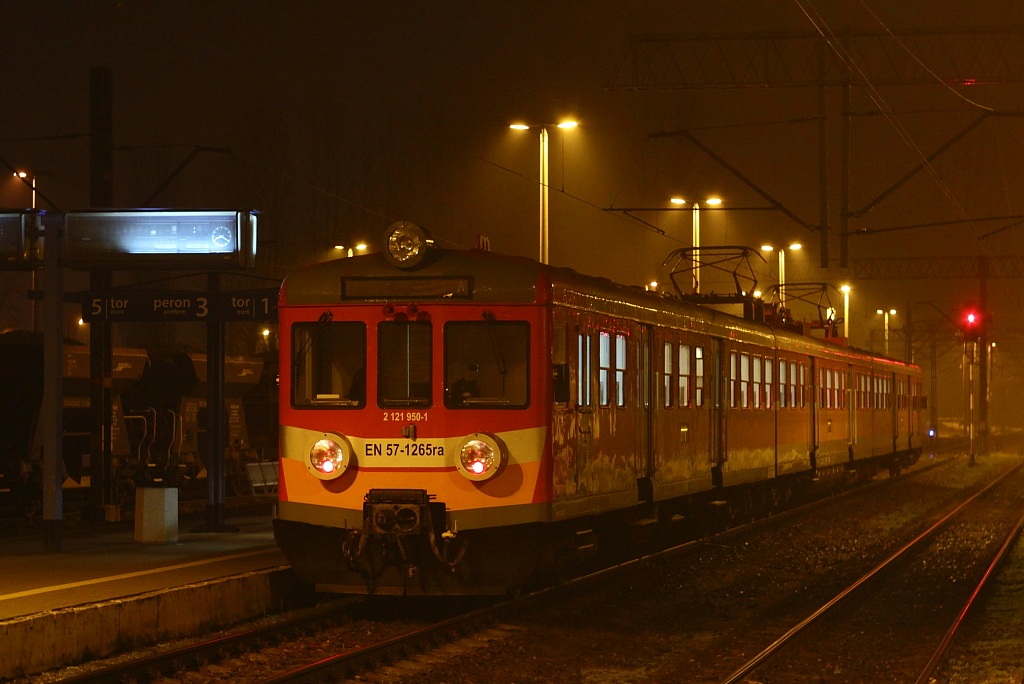 PolRegiowy EN57-1265 zajechał na pusto do Żywca od strony Bielska i szybko zmienił czoło, po czym się udał w stronę Suchej Beskidzkiej.