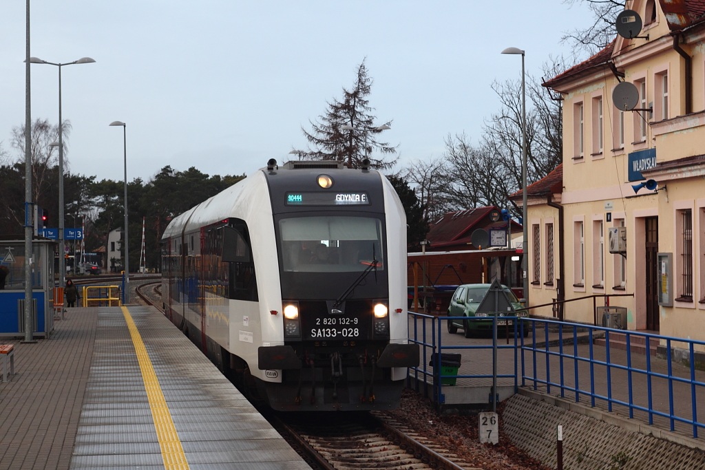 I kolejny raz odwiedziny nad otwartym morzem, gdzie nikt nie słyszał o zjawisku zimy, która niszczy nam życie od niespełna dwóch tygodni. Na zdjęciu SA133-028 czeka odjazdu z miasta pełnego drewutni do Gdyni.