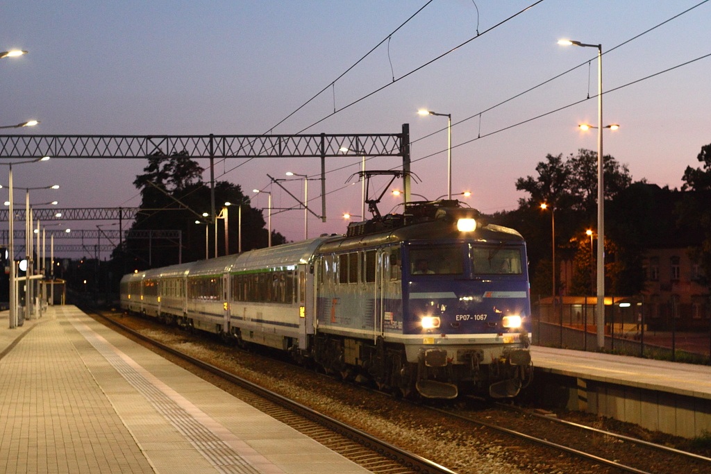 Długo wyczekiwany i opóźniony IC Żuławy ze Szczecina do Olsztyna z EP07-1067 na czele wyhamowuje luxusowe zestawienie w peronie Olsztyna Zachodniego. Wielkość opóźnienia wyniosła 40 minut.