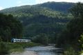 Zestaw dwóch Elfów EN76-006+007 wspina się w towarzystwie rzeki Soły w kierunku Zwardonia. Słońce idealnie zaszło, ale efekt nie jest najgorszy.