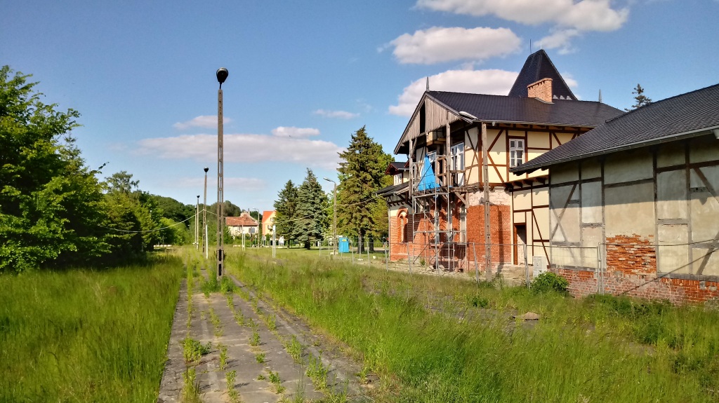 2021-06-02, środa Autor powraca do exploracji ciągle istniejącej linii 254. Tym razem zaglądamy do Tolkmicka. Na zdjęciu widok w kierunku Braniewa. Stacja zarasta powoli póki co trawami, a budynek stacyjny poddawany jest tymczasem skrupulatnej rewitalizacji. Od frontu już szokuje świetnością.