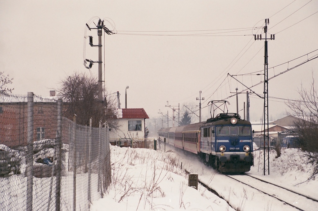 EP07-448 pędzi przez morąskie przejazdy z TLK Pojezierze.