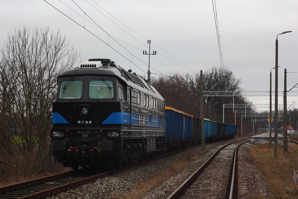 Przed zjazdem z Pasłęka autor dostrzega za peronami BR-ę 233 970 OXAR-u. Jak widać Pasłęk zaopatrzył się węgiel nieznanego pochodzenia z Chruściela...