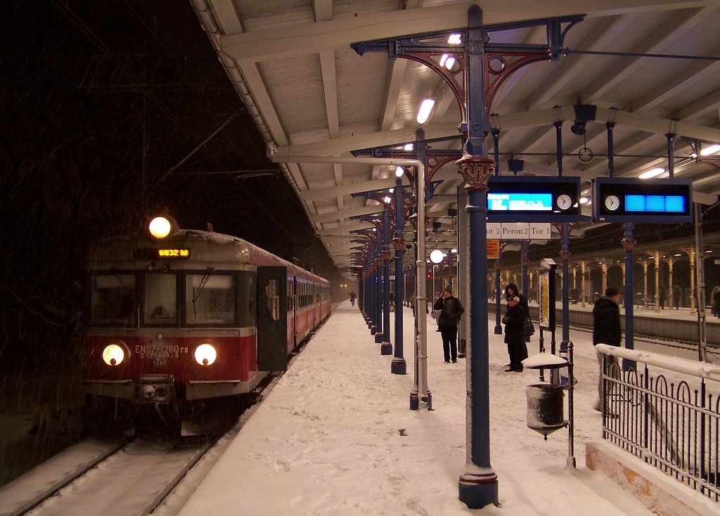 2013-12-06, piątek Jednostka EN57-1280 relacji Gdynia Chylonia - Malbork wykazała się, jako jedyny pociąg w ciągu godziny punktualnością. Jednak po drodze musiało ją coś spotkać, bo na tablicy przyjazdów do Malborka jej nie było... W każdym razie cieszę się, że w końcu można fotografować bez statywu.