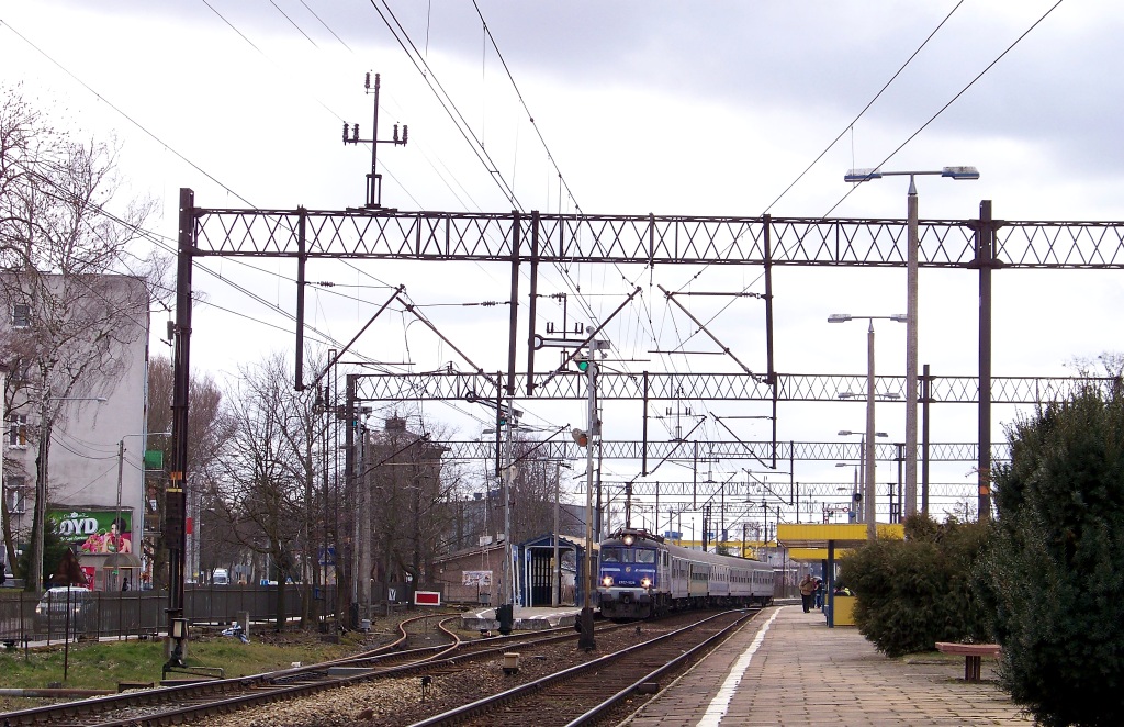 2014-03-17, poniedziałek Ostróda. EP07-1028 z TLK Sielawa do Olsztyna utknęła przed semaforem wyjazdowym, ponieważ tenże nie "podniósł" się wystarczająco, bo można było zaliczyć sygnał jako niewątpliwy. Po kilku minutach (jak przypuszczam) pojawił się Sz. Można też wspomnieć, że tor dodatkowy z lewej strony kadru został oznaczony ok. 2 tygodnie temu tabliczką D1, a co za tym idzie pokrył się Rudą (niczym pewna koleżanka z roku) rdzą.